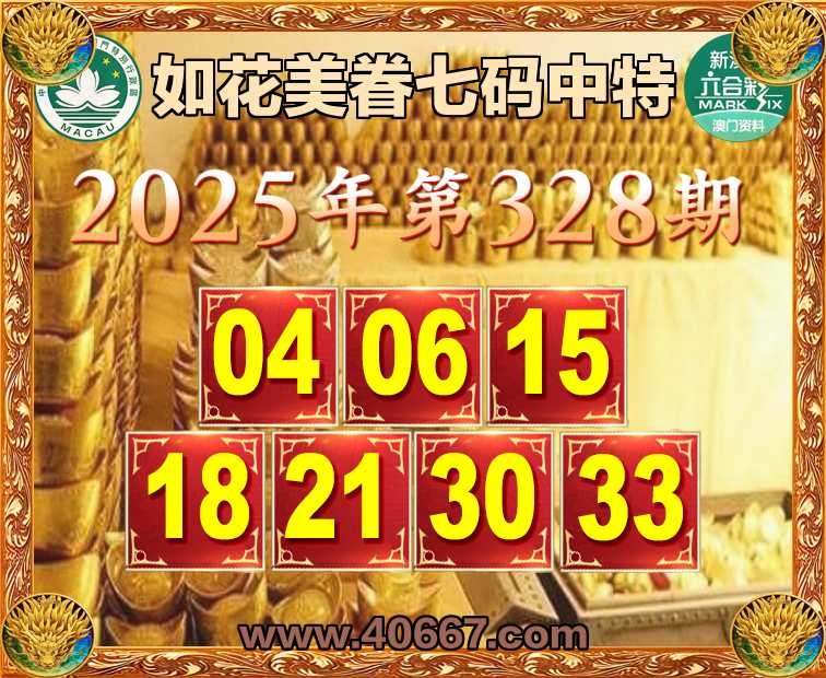 328期:【如花美眷】  ♣️七码中特 ♣️【04.06.15.18.21.30.33】开:03