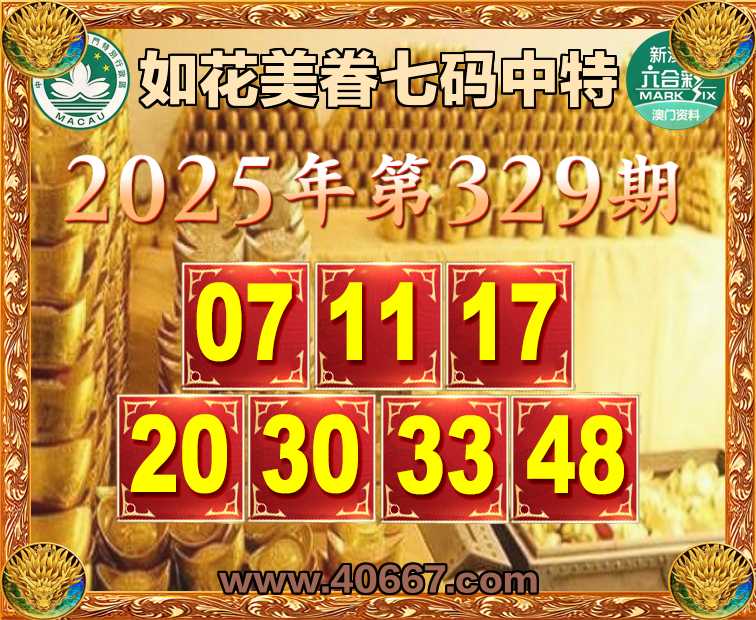 329期:【如花美眷】  ♣️七码中特 ♣️【07.11.17.20.30.33.48】开:17准上榜高手