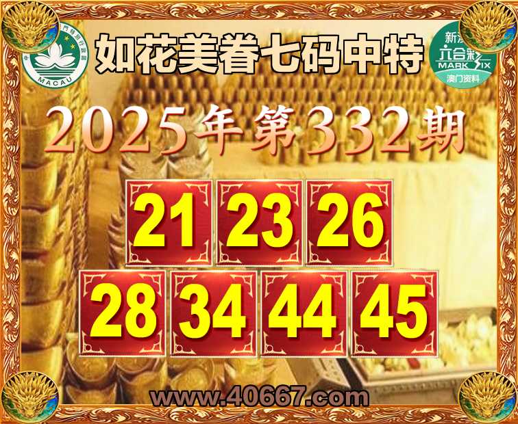 332期:【如花美眷】  ♣️七码中特 ♣️【21.23.26.28.34.44.45】开:26准上榜高手