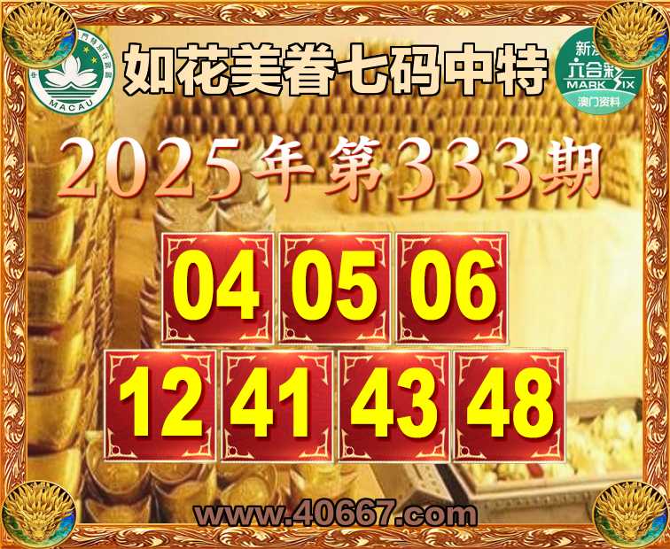 333期:【如花美眷】  ♣️七码中特 ♣️【04.05.06.12.41.43.48】开:06准上榜高手