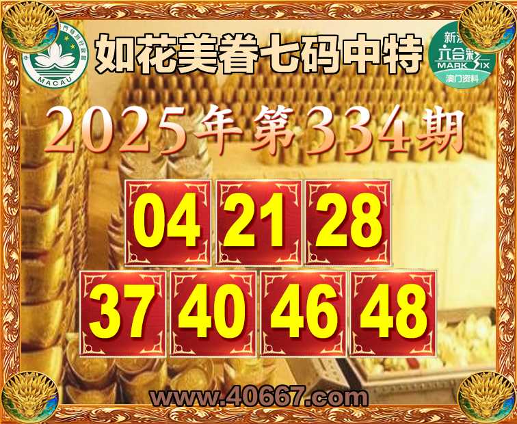 334期:【如花美眷】  ♣️七码中特 ♣️【04.21.28.37.40.46.48】开:46准上榜高手