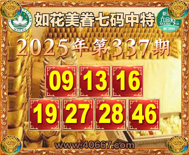 337期:【如花美眷】  ♣️七码中特 ♣️【09.13.16.19.27.28.46】开:09准上榜高手