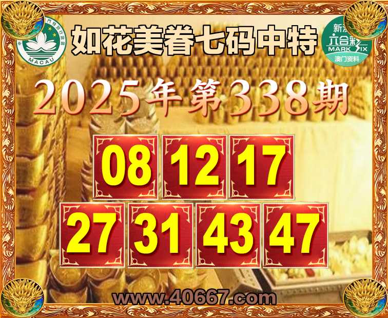 338期:【如花美眷】  ♣️七码中特 ♣️【08.12.17.27.31.43.47】开:08准上榜高手