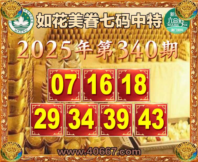 340期:【如花美眷】  ♣️七码中特 ♣️【07.16.18.29.34.39.43】开:16准上榜高手