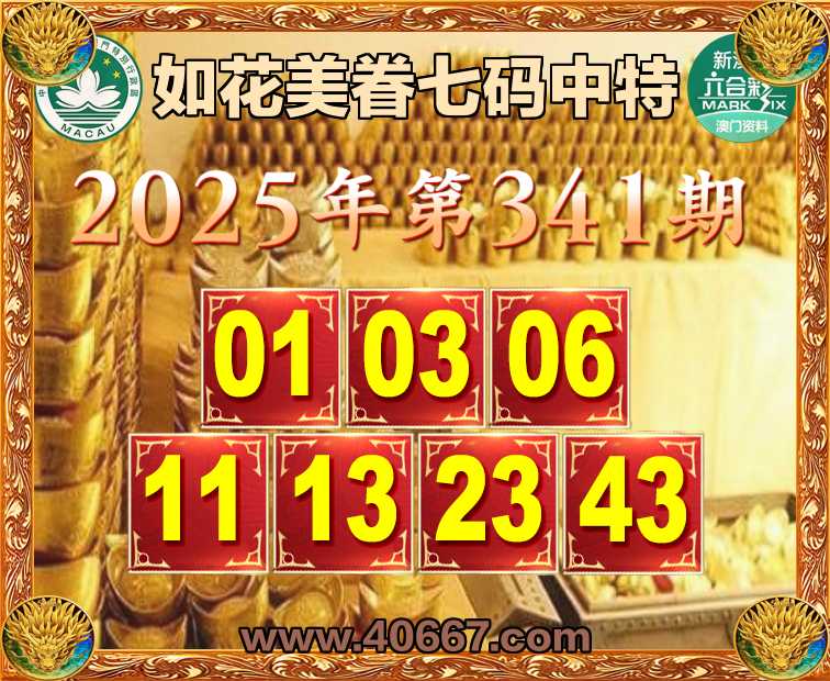 341期:【如花美眷】  ♣️七码中特 ♣️【01.03.06.11.13.23.43】开:06准上榜高手