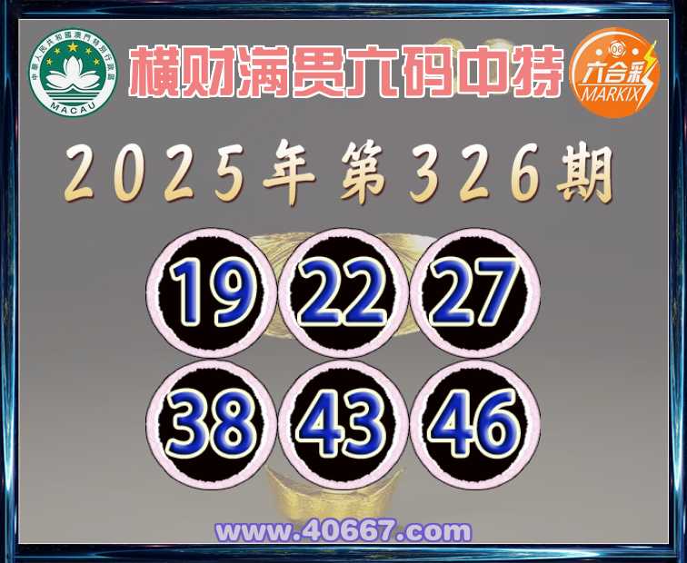 326期:【横财满贯】 🍅六码中特🍅【19.22.27.38.43.46】开:19准上榜高手