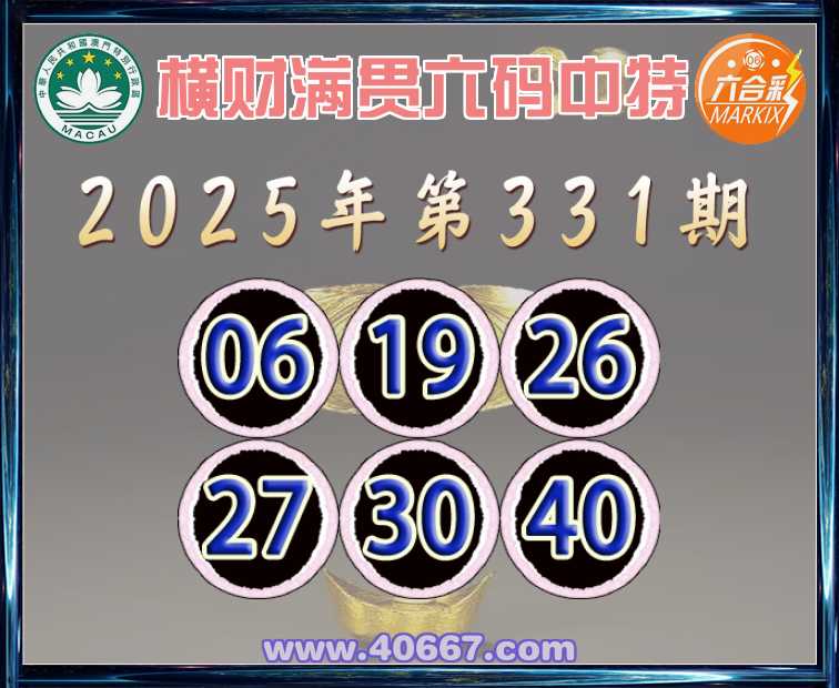 331期:【横财满贯】 🍅六码中特🍅【06.19.26.27.30.40】开:26准上榜高手