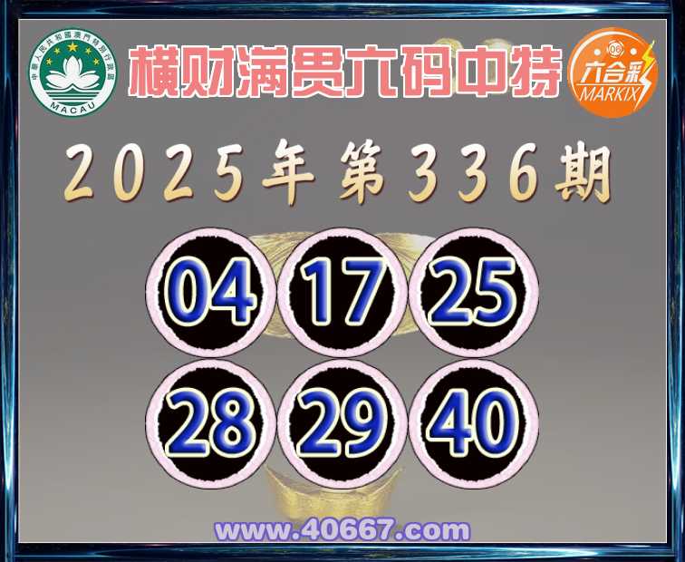 336期:【横财满贯】 🍅六码中特🍅【04.17.25.28.29.40】开:17准上榜高手