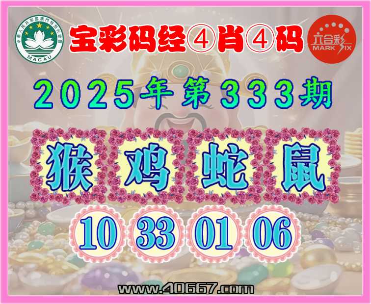 333期:🧸『宝彩码经』🧸④肖④码🧸【猴鸡蛇】【10.33.01.06】开:鼠06