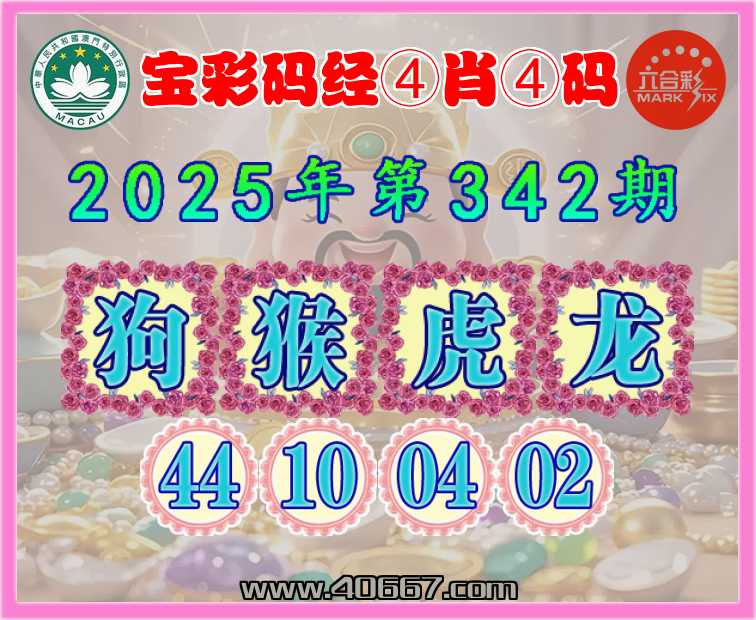 342期:🧸『宝彩码经』🧸④肖④码🧸【狗猴虎龙】【44.10.04.02】开:00准